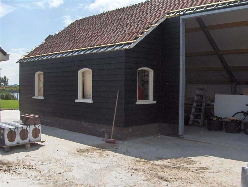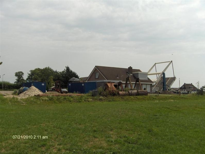 In Follega (naast de brug) wordt, in eigen beheer, een nieuwe berging/ garage gebouwd. Het gebouw wordt traditioneel gefundeerd op heipalen en gestorte funderingsbalken met betonvloeren. Hierop een stalen spantconstructie welke bekleed wordt met sandwichpanelen. Aan de buitenzijde wordt de loods bekleed met zwarte houten planken en rode dakpannen. Er worden traditionele hardhouten kozijnen gebruikt en tevens opgeklampte loop + schuurdeuren om het geheel een uiterlijk als vissersschuur te geven, geheel passend in de omgeving naast de Follegasloot. In april 2011 is gestart met de sloop van de bestaande garage. Aansluitend worden de betonvloeren gestort. Midden juni zal de staalconstructie worden gemonteerd. Midden juli zal het gebouw geheel gereed zijn.