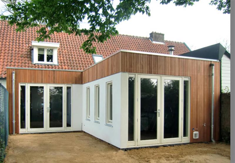 Aan de Oasingaleane te Langweer zal de bestaande berging worden gesloopt en plaats maken voor een ruime uitbouw van 45 m2 die gebruikt wordt als kantoor. Het betreft hier een authentiek notariswoning. De uitbouw is contrasterend uitgevoerd en krijgt een strakke en moderne vormgeving. De uitbouw wordt naast werkruimte voorzien van een entree-pantry + toilet en een aparte archief/ opslagruimte. Uitvoering: funderingsstroken op zand. Beganegrondvloer ook op zand voorzien van een 100 mm EPS islatie aan onderzijde. Opbouw van HSB-wanden met aan de buitenzijde fijn bezaagde red-cedar schroten. Rondom de ramen een kunststof beplating in de kleur antraciet. Tevens wordt het dak van de woning gerenoveerd; schoorstenen met borden compleet vervangen als zowel de dakkapellen en de dakpannen rondom. Extra velux dakvensters en 1 dakkapel extra.