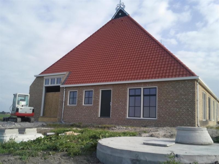 Samen met de fam. De Beer te Hindeloopen mag BBT-Oudega in eigen beheer een complete nieuwe woonboerderij bouwen. Deze komt op de terp aan de Angterperlaan 2 te Parrega. De vorige boerderij was is dusdanige slechte staat dat deze vorig jaar al is gesloopt.  BBT-Oudega heeft het oude handgetekende ontwerp volledig gedigitaliseerd en aangepast naar de wensen van de opdrachtgever. Daarna de uitvoeringstekeningen en detaillering verder uitgewerkt zodat hiervan kon worden gewerkt en besteld. Archeologisch onderzoek en gemeentelijk beleid heeft bij dit project veel tijd in beslag genomen, maar uiteindelijk is dinsdag 24 september de 1e paal de grond in gegaan. De boerderij wordt in een traditionele stijl en kleuren opgebouwd met gebruik van moderne bouwmaterialen en zeer hoge isolatiewaarden (Rc 4.5-5). Er zal gebruik worden gemaakt van een warmtepompsysteem en zonnecollectoren.  De buitenkozijnen zullen van aluminium worden gemaakt maar dan ook weer in de oude stijl. Entree een ruime vide met aansluitend een lange gang. Naast een ruime woonkamer en eetkeuken komt er een grote tuinkamer langs de zijgevel, incl een kantoor. Beneden 1 slaapkamer met ruime badkamer. Boven 3 ruime slaapkamers met elk een ruime badkamer. Achterste vakken wordt berging en garage. Alle vloeren zowel boven als beneden worden voorzien van vloerverwarming.