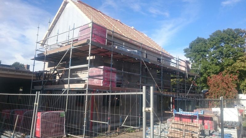 Bouwbedrijf Klaversma te Mantgum is aan de Master- Gorterstrjitte 23-25 te Reduzum , onlangs opgestart met de nieuwbouw van een ruime duurzame vrijstaande woning met 4 bouwlagen. ( voormalige huurwoningen zijn gsloopt ) De 1e bouwlaag is een prefab kelder over de breedte van de woning. De woning is voorzien van een zeer ruime woonkeuken welke is afgesloten dmv en-suitedeuren van de woonkamer. Achter de woonkeuken een grote bijkeuken 3*3. m2 en een garage 4*8 m2. Op de verdieping ( overal 2.60m1 hoogte ) een overloop met inbouwkasten, de luxe badkamer, een master bedroom met inloopkast 3*6.5 en 2 slaapkamers 3*3.5. De goed beloopbare en ruime zolder van 70 m2 is bereikbaar middels een 2e vaste trap. ( totaal inhoud 700 m3 !)
