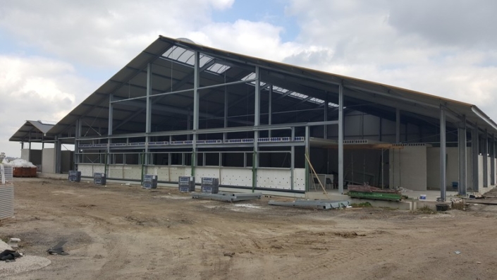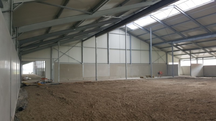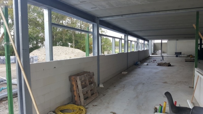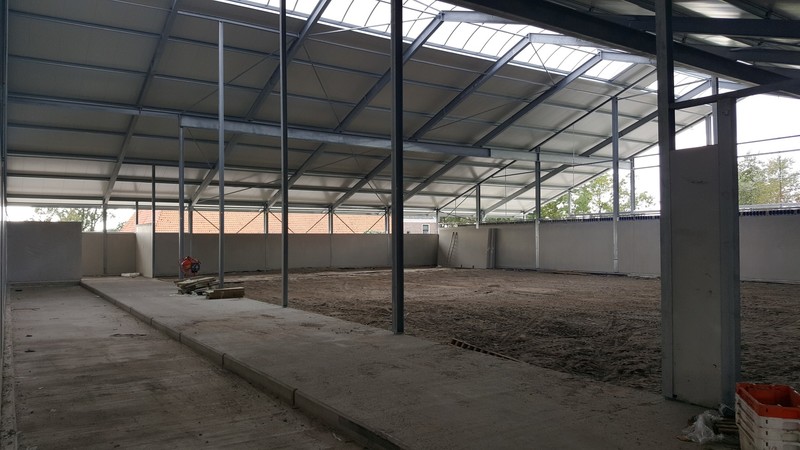 grondverbetering van menggranulaat. Bovenbouw met thermisch verzinkte spanten. Geïsoleerde dak